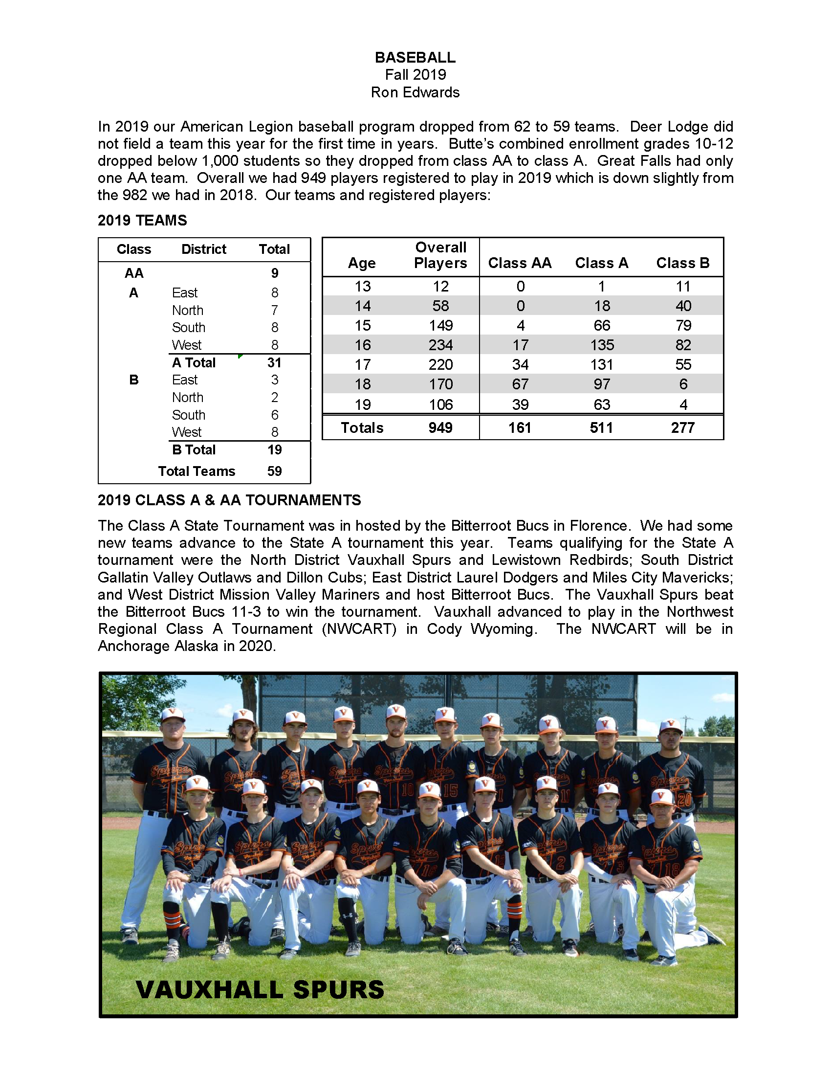 1948 Montana American Legion Baseball was divided into Class A and B divisions.